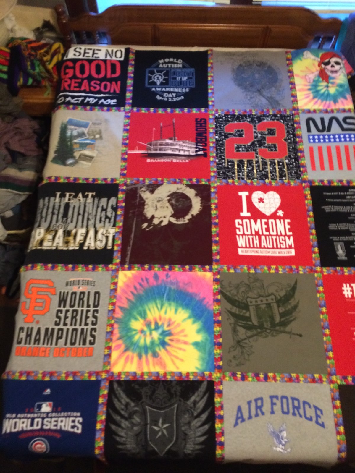 T-shirt quilts have been a popular item. Instead of the T's taking up room in your closet you can turn them into something useful.