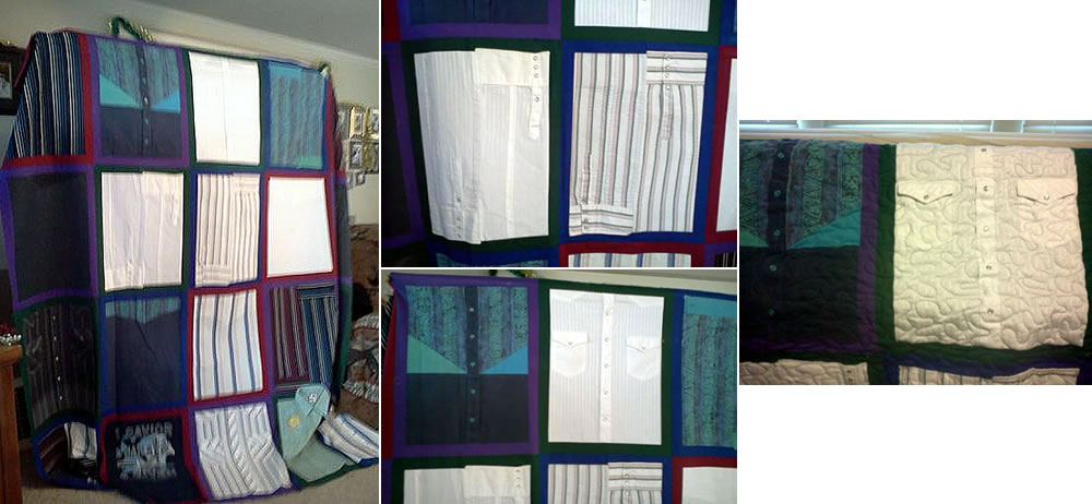I have also made quilts with the men's plaid or striped cotton shirts with the button-down collars and with the western shirts with pearl